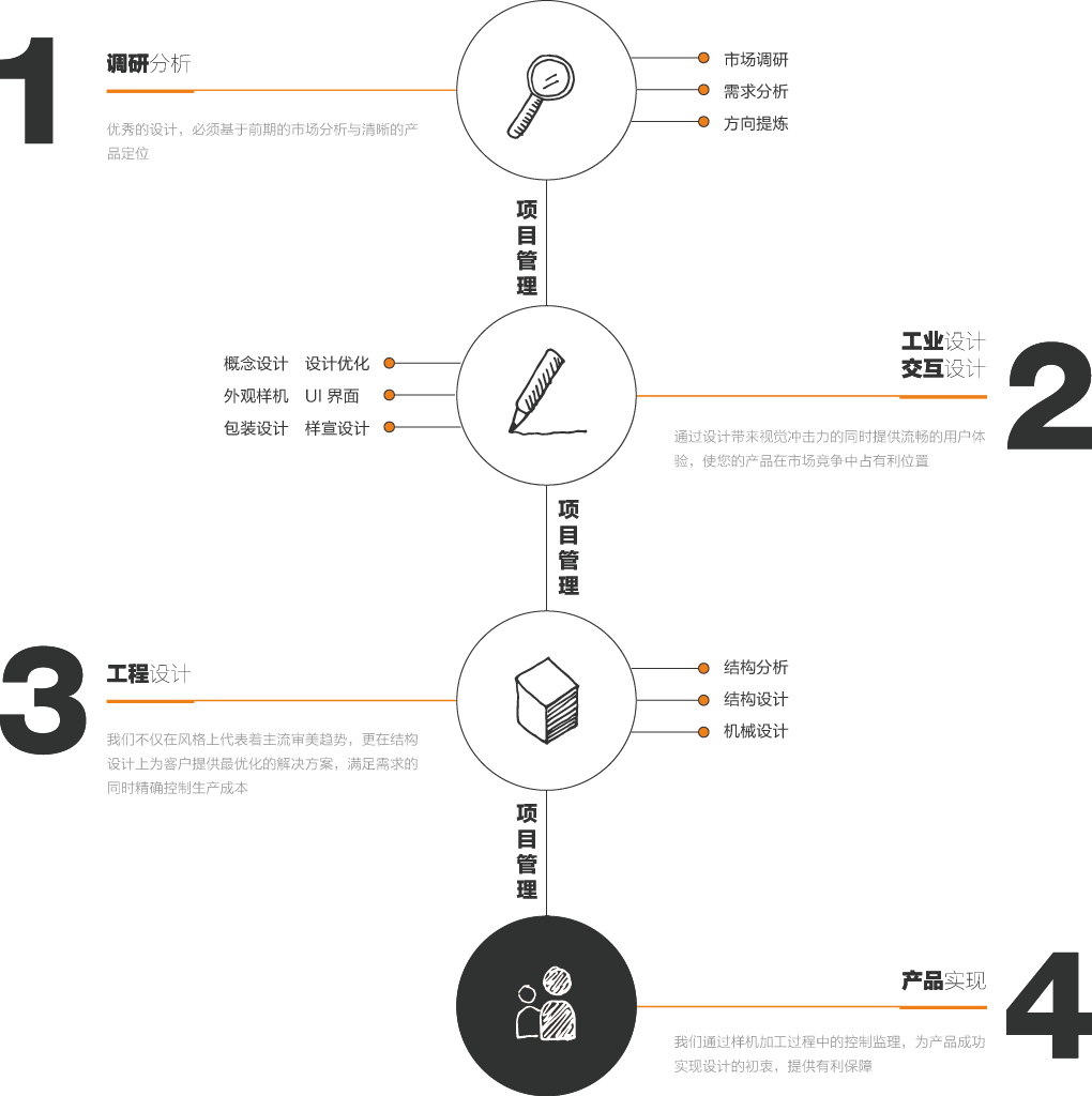 根据客户需求与使用环境,通过设计带来视觉冲击力的同时为产品用户提供流畅的用户体验,使产品在市场竞争中占有有利位置。