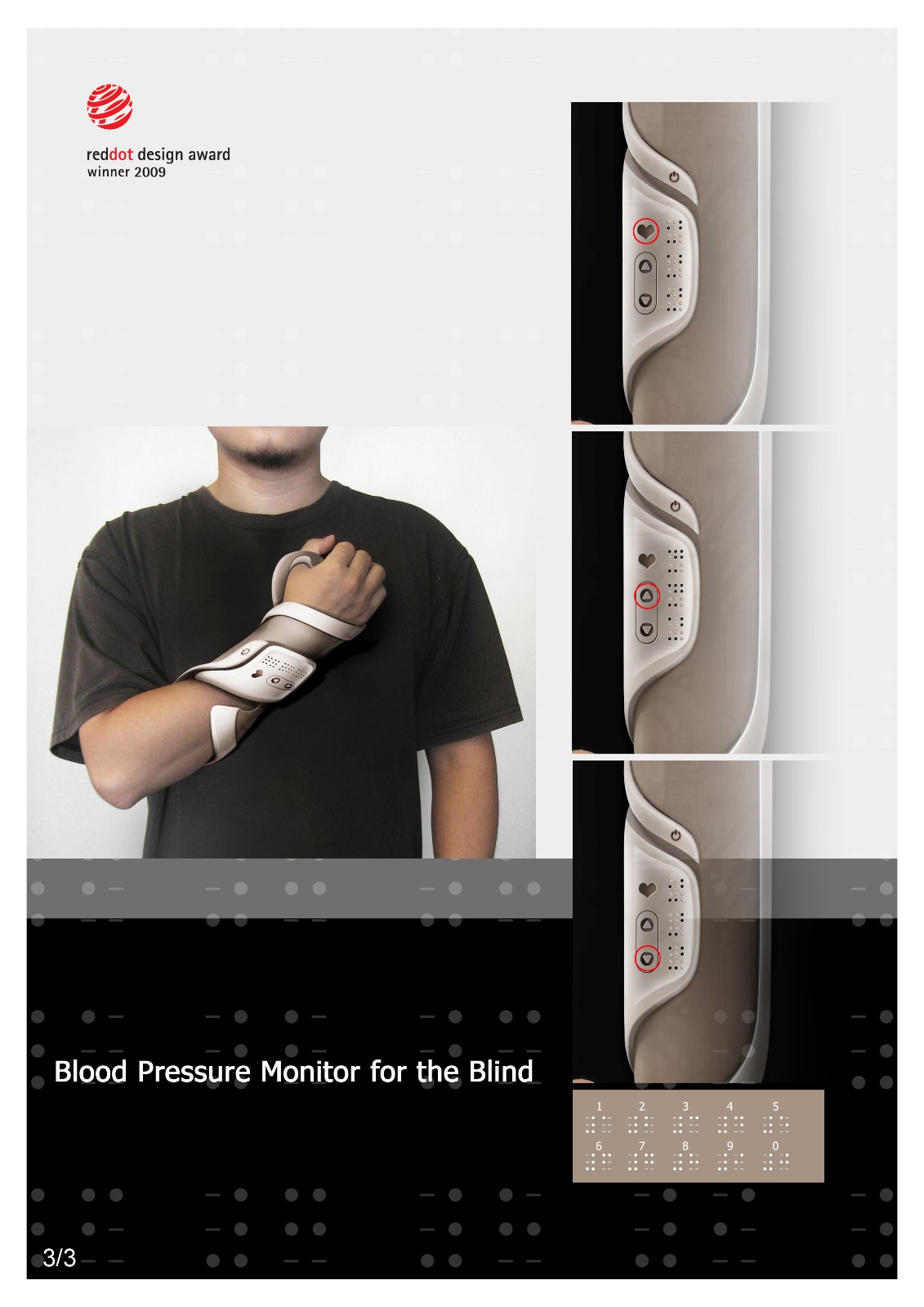 通过专门设计的扣环,让盲人或视力障碍者可以独立完成唯一的佩戴姿势;并通过微电脑控制程序,产生不同的凸起点,测量者通过触摸凸起点了解自己的血压和心率状况,消除他们在生活中的挫折感,重获生活的信心。